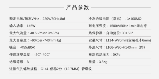 JP - 120H無油真空泵產品參數